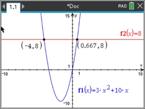 to find where the line y = 8 intersects with the parabola. (-4,8) and (-.667,8)