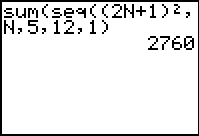 Again, we will be using the sum and seq features of the calculator to find the summations.  The summation is interpreted as: